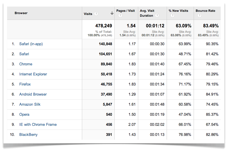 This month I included a screenshot of the different types of browsers that people are using when reading Pinch of Yum. See what’s in the #1 spot? Safari (in-app).